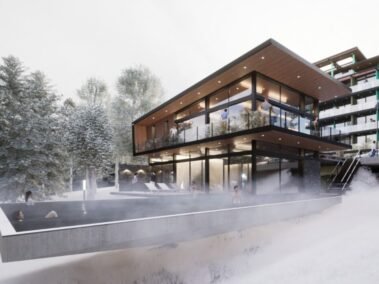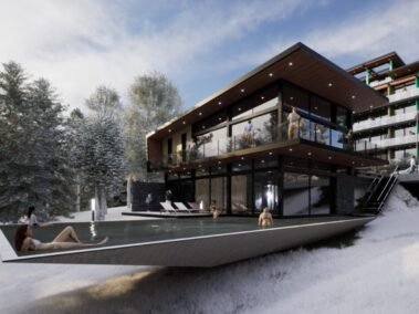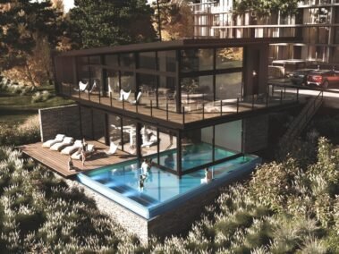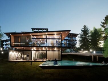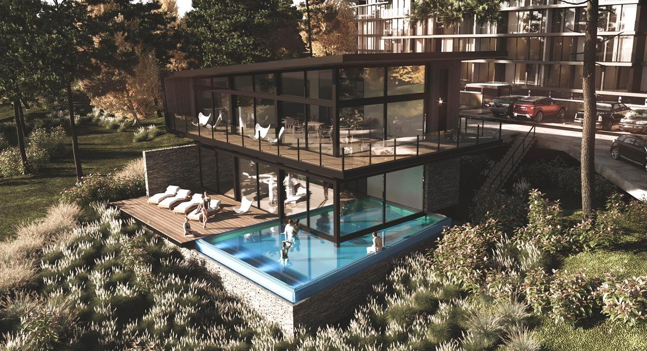 Dentro de un complejo de mas de 10.000m2, se encuentra este edificio que función acomo SUM, gimnasio y pileta completando las ameniies del mismo y definiendo sus líneas arquitectónicas entre los voladizos y una moderna solución para los espacios, integrando las diferentes funciones del mismo.